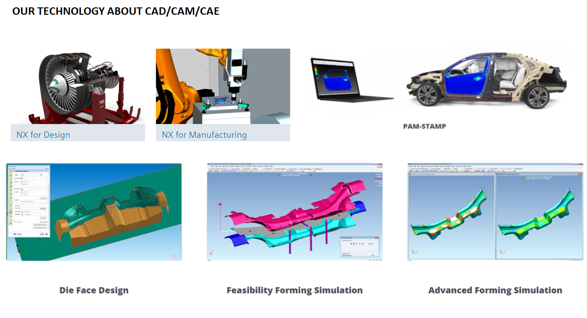 บริษัท แอปโก ออโต้บอดี้ แอนด์ ดายส์ จำกัด เรามีทีมงานที่มีประสบการณ์ในการผลิตและสร้างแม่พิมพ์งาน Stamping ทั้งการออกแบบแม่พิมพ์ (Die) สำหรับการผลิตการปั้มชิ้นส่วน (Stamping Press Line) แบบ Tandem line, Progressive Line และ Transfer Line และเรามีความพร้อมทางเทคโนโลยี CAD/CAM/CAE เพื่อให้การผลิตและสร้างแม่พิมพ์ได้แม่พิมพ์ที่มีคุณภาพ ลดข้อผิดพลาดในการออกแบบ และลดเวลาในการสร้างแม่พิมพ์ (Die) ทำให้รองรับ Master plan ของลูกค้า